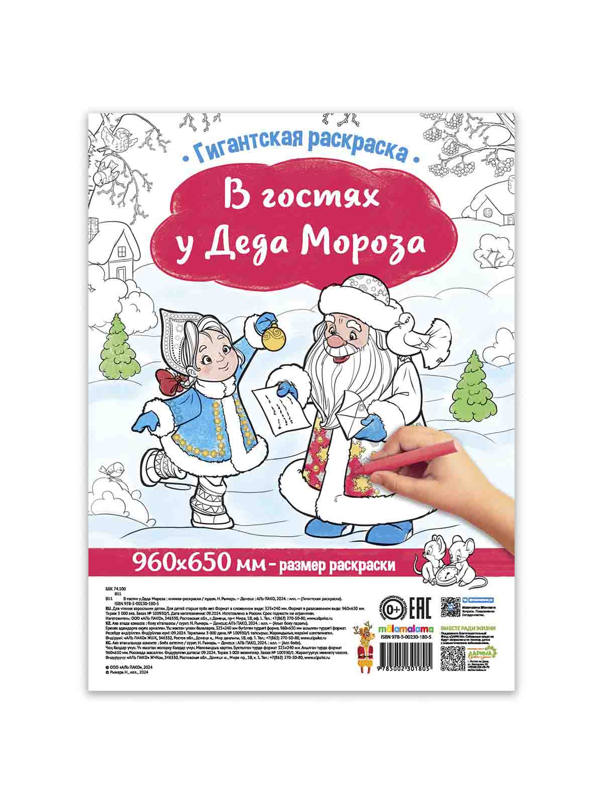 Встречайте волшебный мир новогодней сказки с гигантской раскраской от Malamalama! Раскраска раскладывается плакат размером 960×650 с большой подробной иллюстрацией на новогоднюю тематику. Это отличное