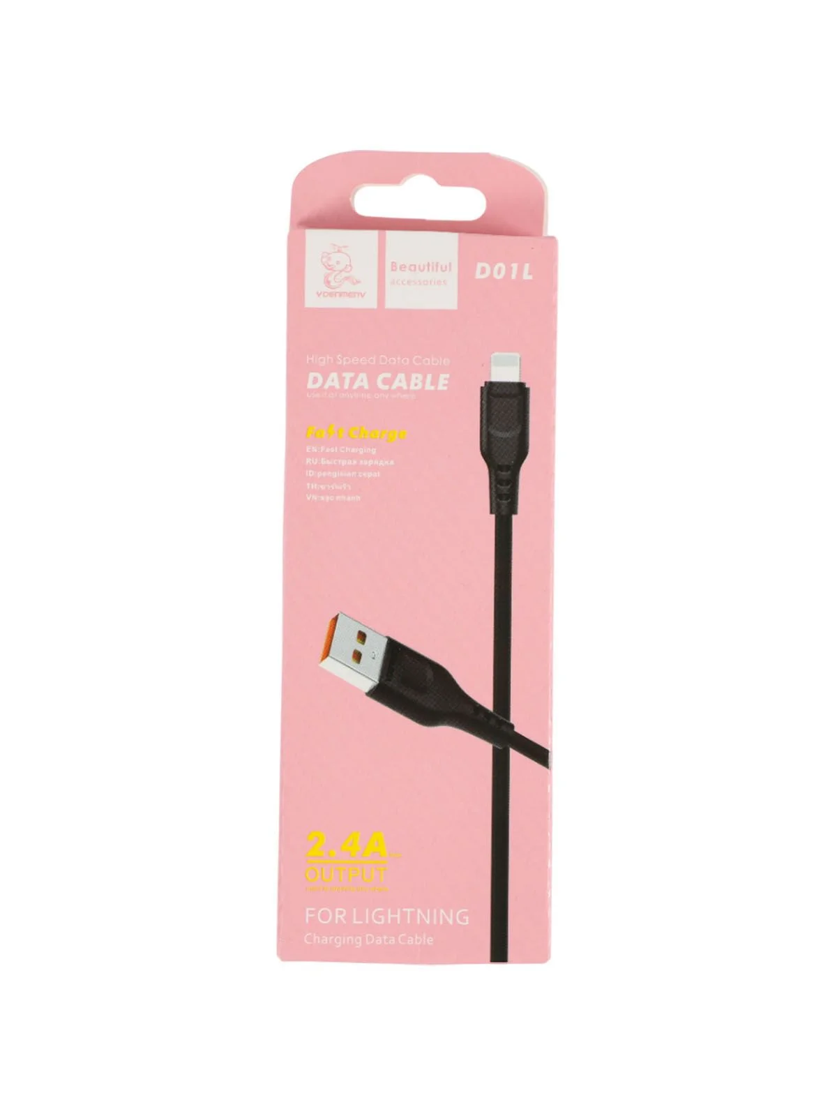 Кабель для зарядки, черный, lightning, 1.0М, 2.4А