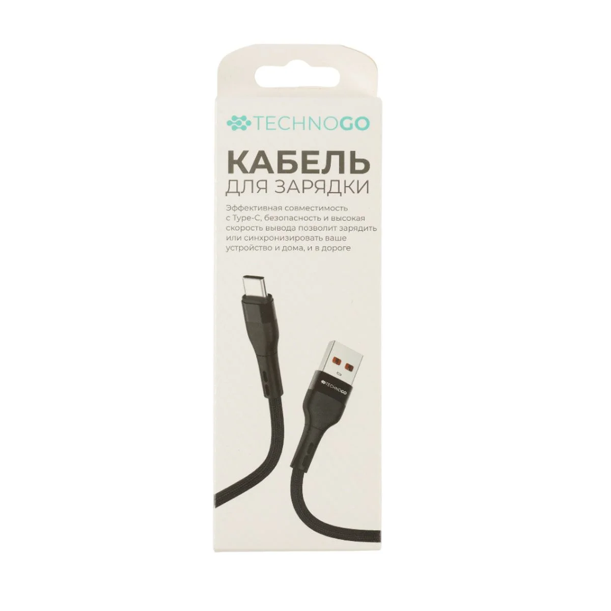 Кабель для зарядки в тканевой оплетке, Type-C, 2,4 А, 3,5*(900-1000) мм (D60T-black)