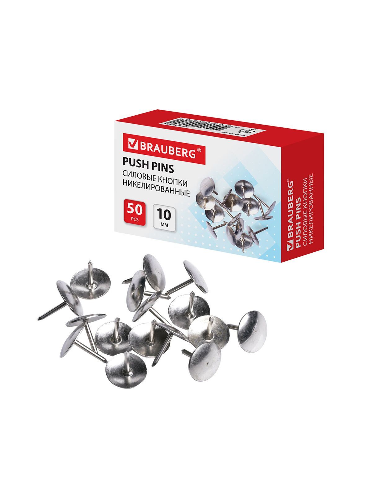 Кнопки канцелярские BRAUBERG, металлические, серебристые, 10 мм, 50 шт., в картонной коробке, 220553