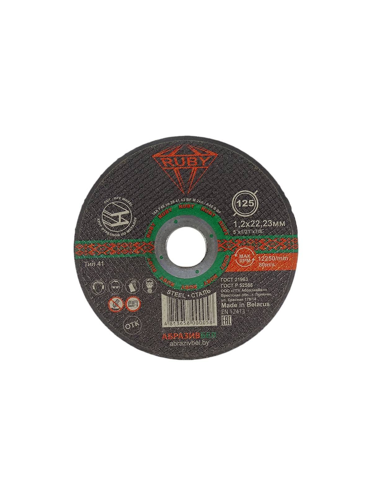Круг отрезной, абразивный "RUBY" 125х1,2х22,23