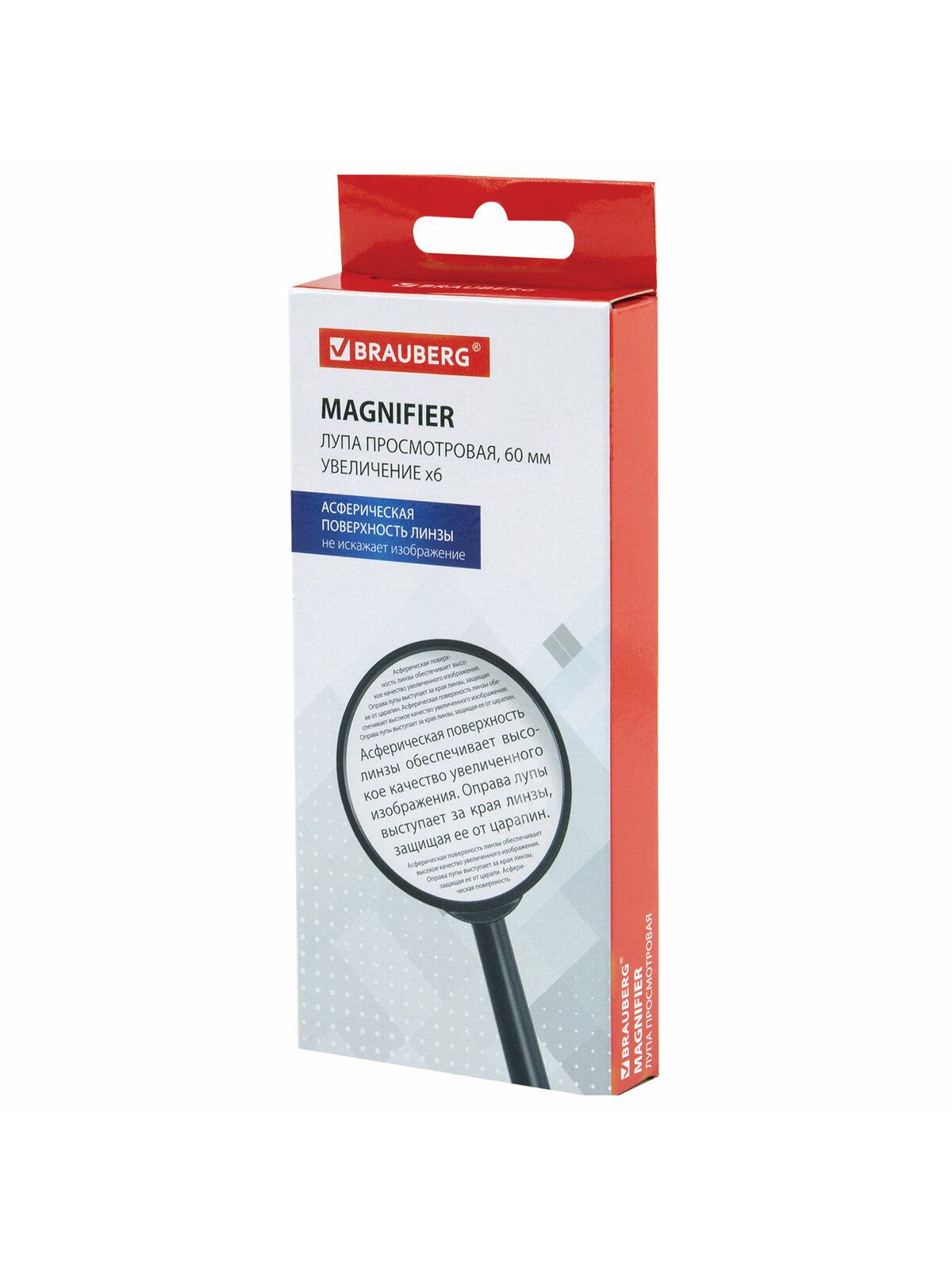 Лупа просмотровая BRAUBERG диаметр 60 мм, увеличение 6, 451799