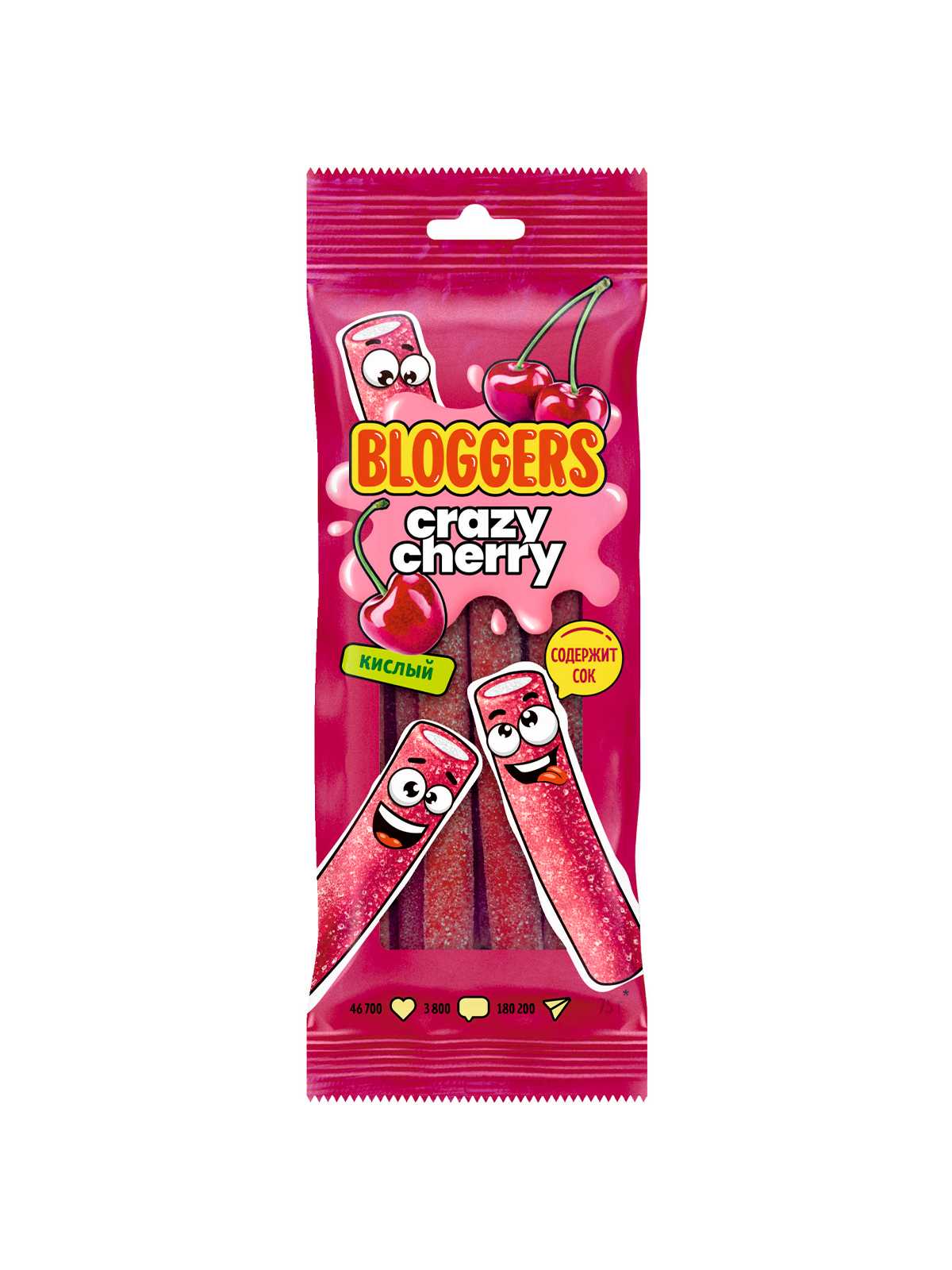 Мармелад BLOGGERS Крейзи Черри (трубочка) в кисло-сладкой обсыпке 75г