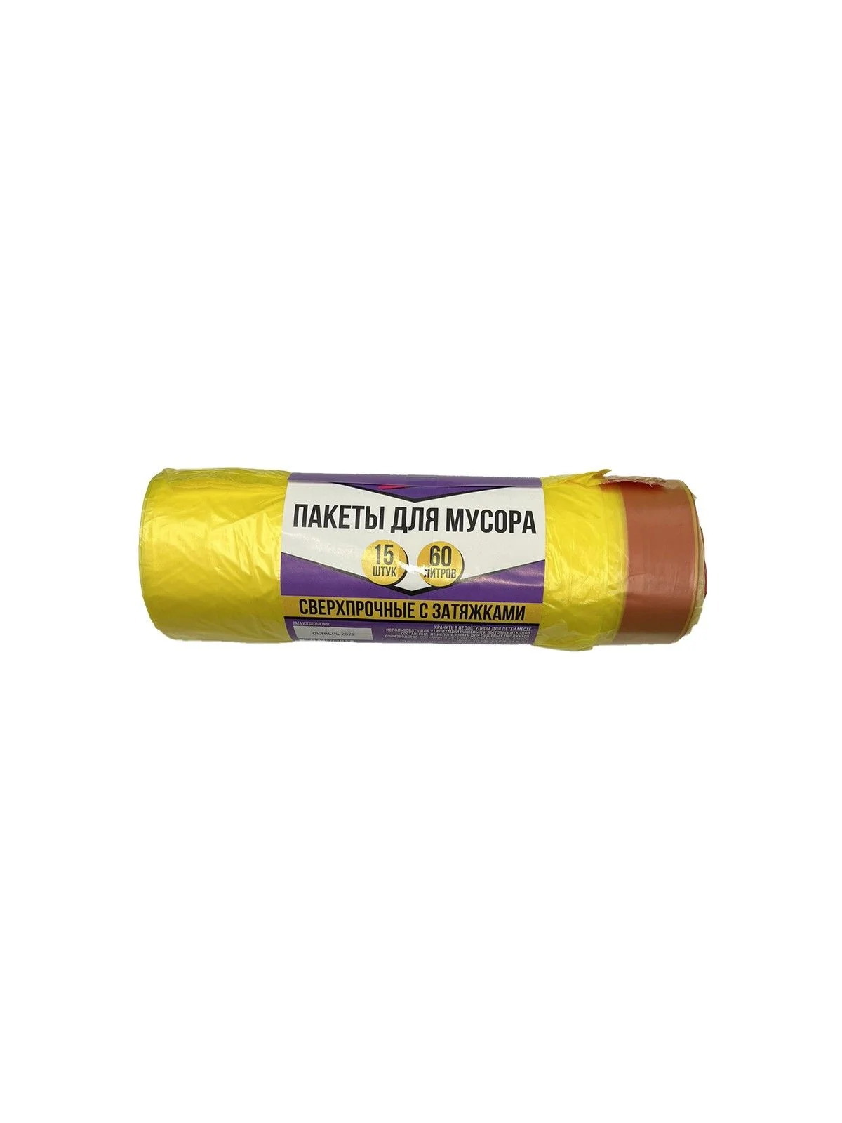 Мешки для мусора с затяжками " Чистюлино", 60л, 15 шт. в рулоне, толщ. 13 мкм, цв.желтый ( с красно