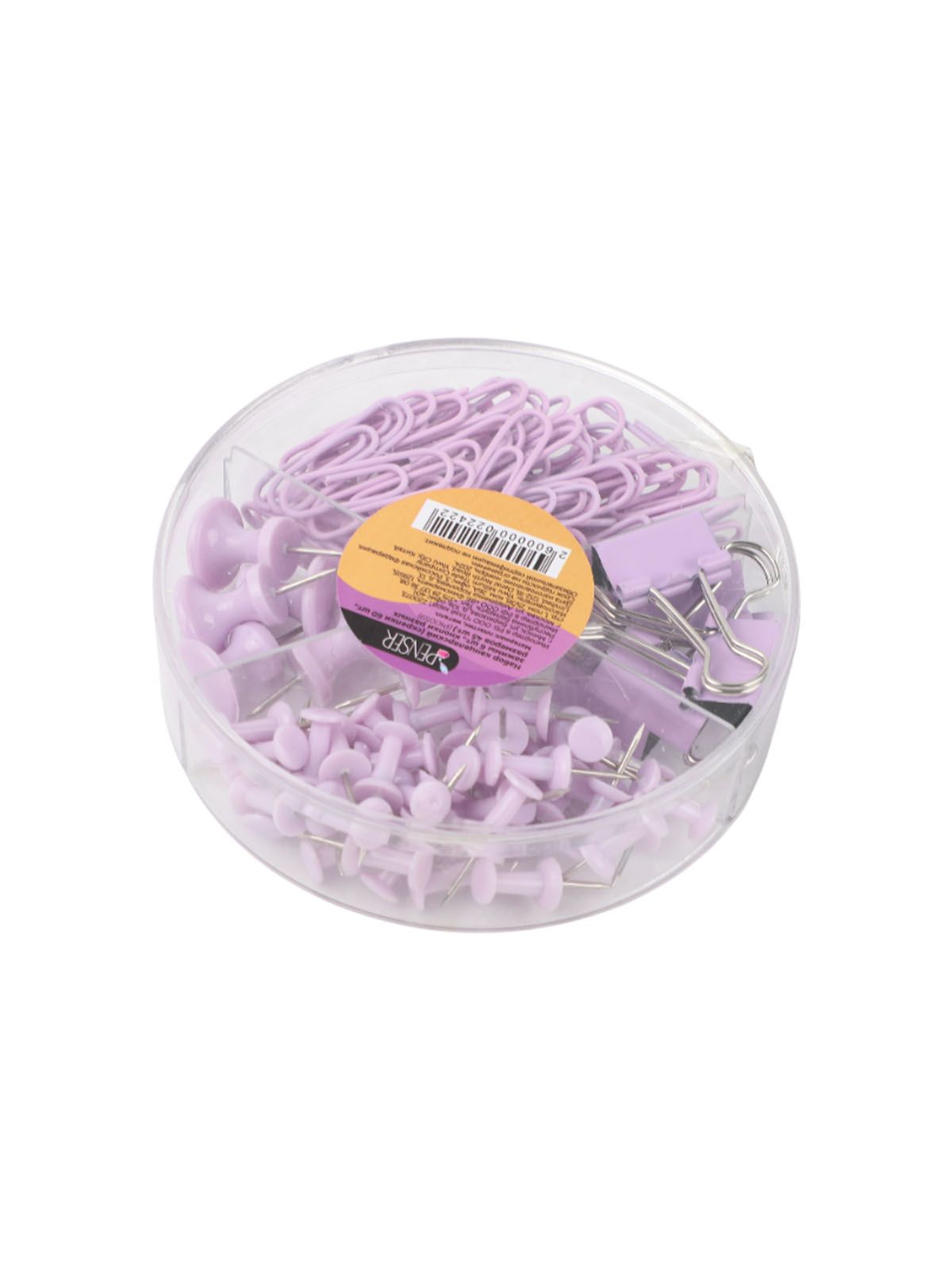 Набор канцелярский (скрепки 60 шт., зажимы 6 шт., 45 кнопок разных размеров) (PK1059)