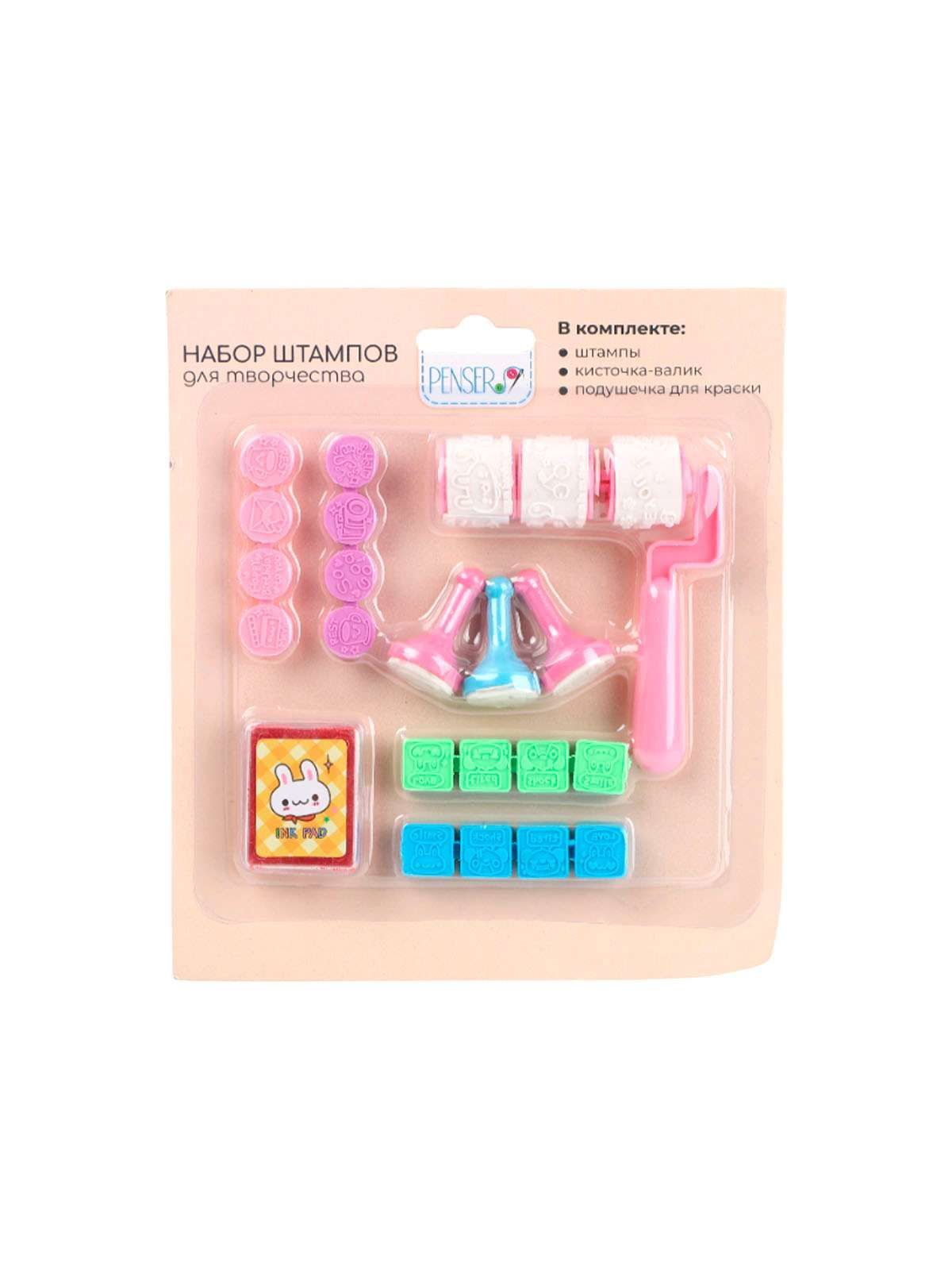 Набор штампов для творчества (штампы, кисточка-валик, подушечка для краски)