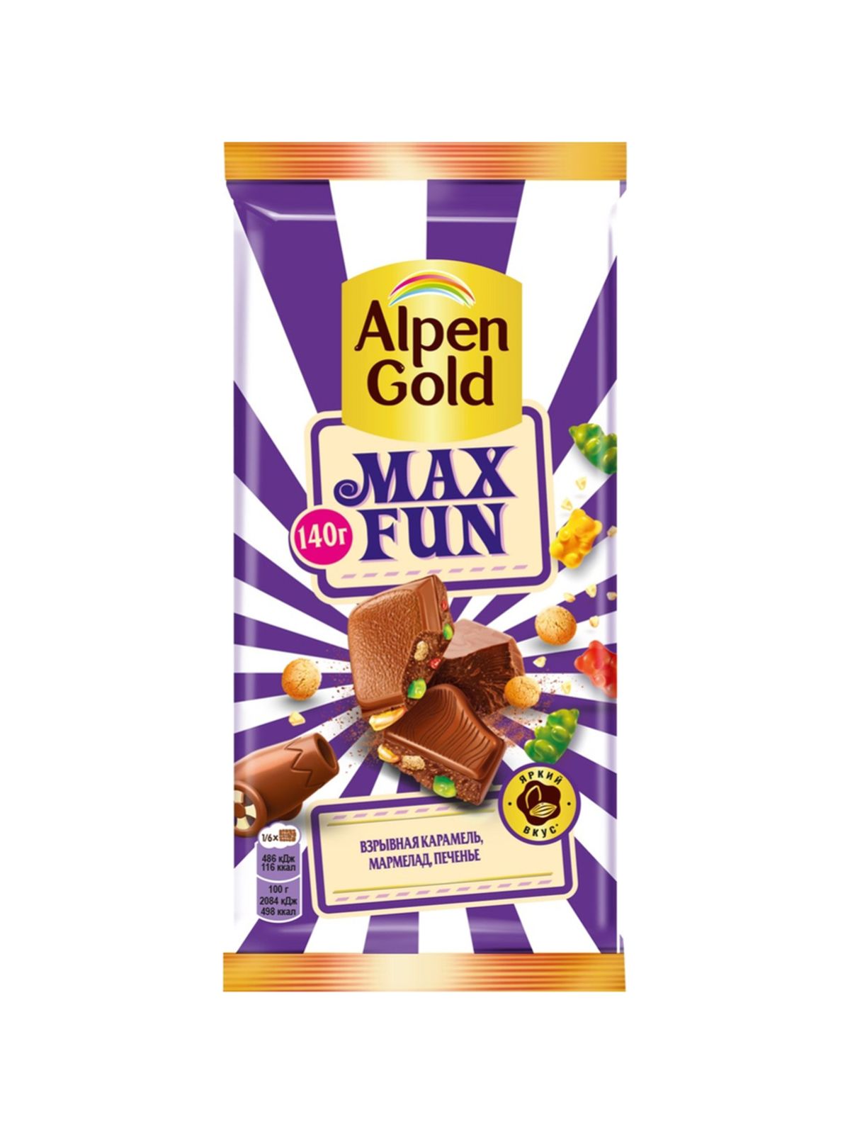 Шоколад мол. «Альпен Гольд МаксФан» со взрывной карамелью, мармеладом и печеньем 140г