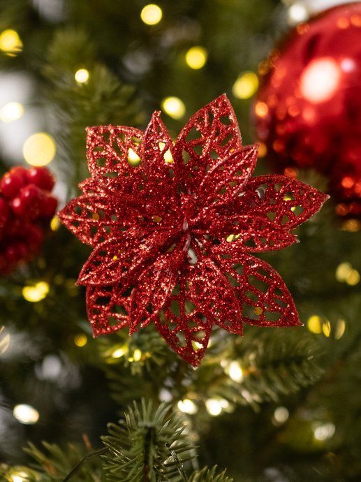 Украшение декоративное "Рождественский цветок", 8 см, 6 шт